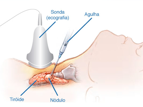 Os exames são realizados através da introdução da agulha em direção à lesão, existe a biópsia que é a retirada de um pequeno fragmento da lesão e enviado para análise e a biópsia aspirativa (também conhecida como punção aspirativa ou biópsia por agulha fina) é um método de diagnóstico que consiste em introduzir uma agulha fina em nódulo a ser examinado e retirar células que serão fixadas em lâminas e encaminhadas para análise. É realizada frequentemente nos nódulos da tireoide, mamas, gânglios etc.